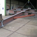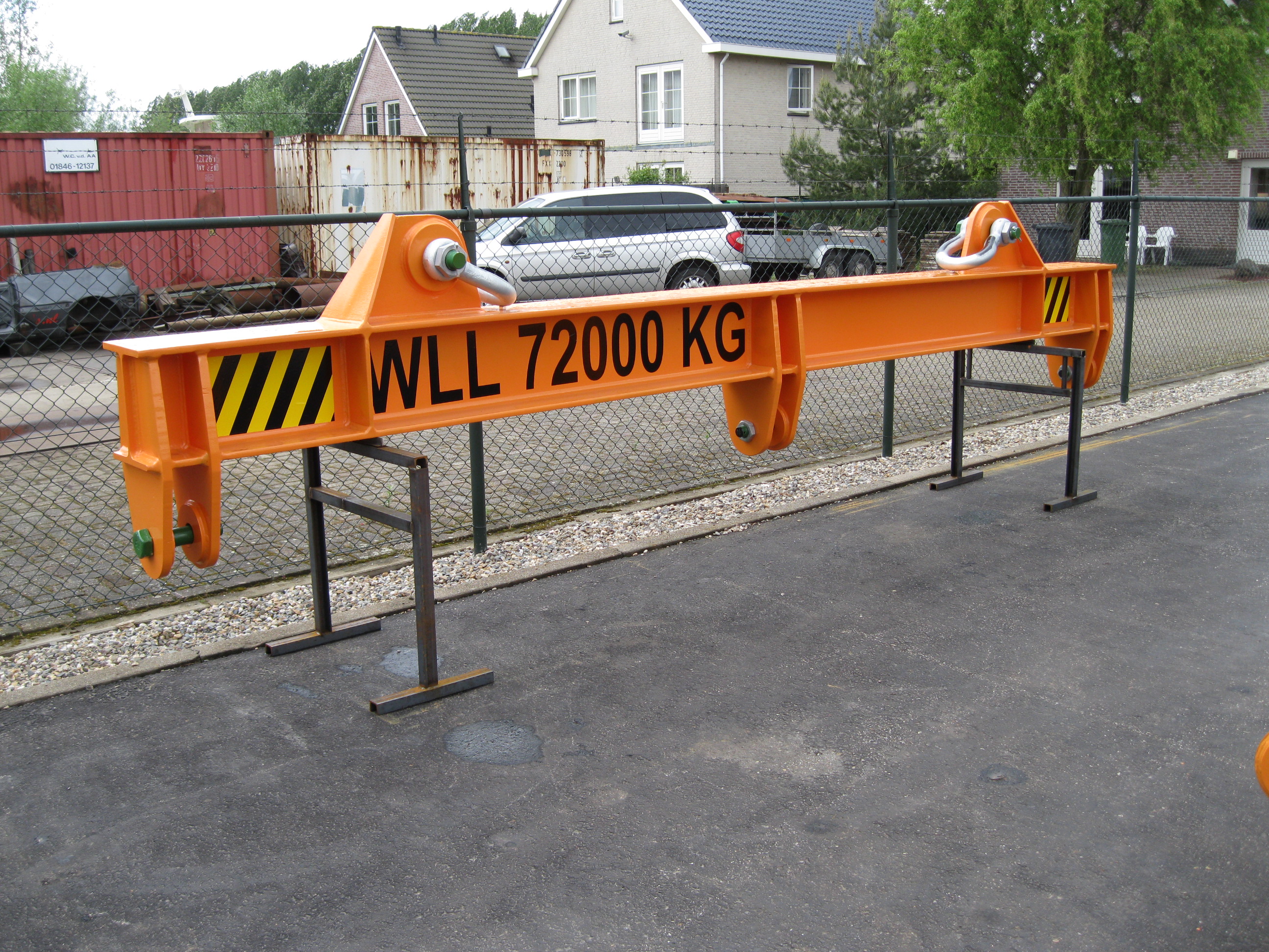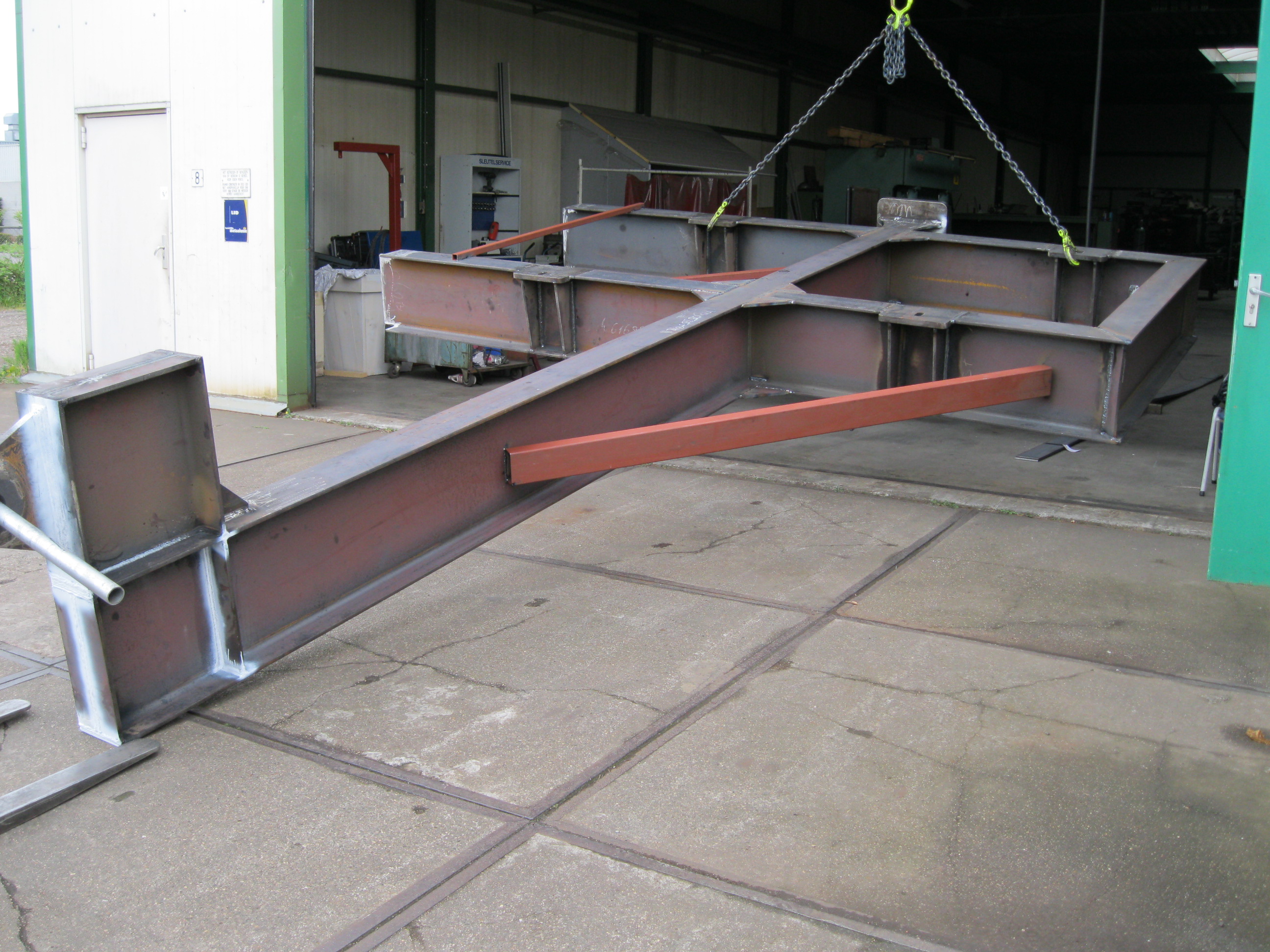 Voor het hijsen van een betonblok van ca. 9 x 6,5 meter heeft de firma Heijmans een maatwerk hijsjuk nodig. In samenwerking met J. van der Stelt Grondverzet te Werkendam is dit hijsjuk gebouwd wat gekeurd is voor 72 ton, of te wel 72.000 kg!